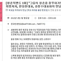 | [청춘북밴드 1회] "그들의 청춘을 질투하기엔 넌 아직 젊다" 임희영저자, 한동헌대표, 송정수대표와의 만남 (0) | 2012.01.06 |
